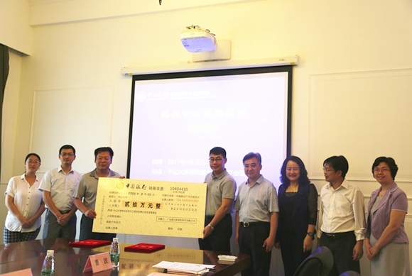 2017年4月20日上午,材料科学与工程学院首笔捐赠资金“博兴学生发展基金”捐赠签约仪式在南校园十友堂举行。广东博兴新材料科技有限公司创办人兼总经理、校友庞来兴博士,中山大学副校长朱熹平,教育发展与校友事务办公室主任兼教育发展基金会秘书长李汉荣,材料科学与工程学院院长杨国伟、党委书记李永乐、党委副书记刘芳等出席了签约仪式。