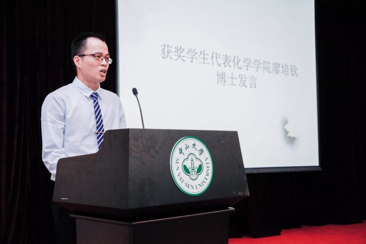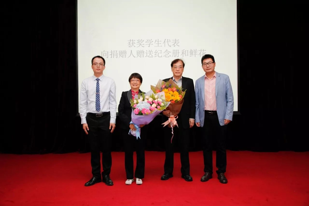 物理学院教师代表郭东辉教授、化学学院学生代表廖培钦博士发表获奖感言,获奖学生代表向捐赠人刘修婉校友赠送鲜花和纪念册。