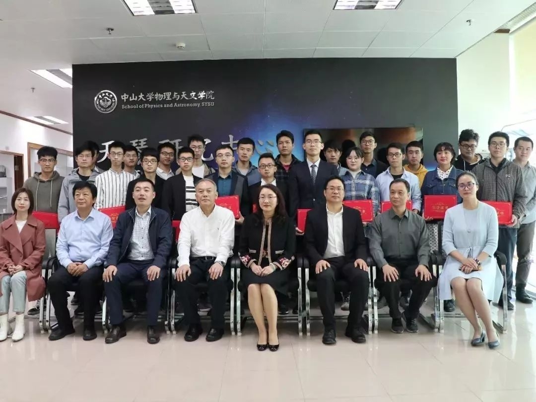 2019年12月24日,物理与天文学院2019年“中国航天基金会-环亚航天奖学金”颁奖仪式在中山大学珠海校区行政楼八楼天琴中心会议室举行。中国航天基金会副秘书长王塞南、中国航天基金会事业发展部部长杨爱民、广州环亚化妆品科技有限公司总裁吴知情、品牌管理部总监康霓、中山大学教育发展基金会副秘书长黄源穗、物理与天文学院林伟鹏院长、党委委员何振辉教授出席颁奖仪式。仪式由学院党委副书记王昕主持。