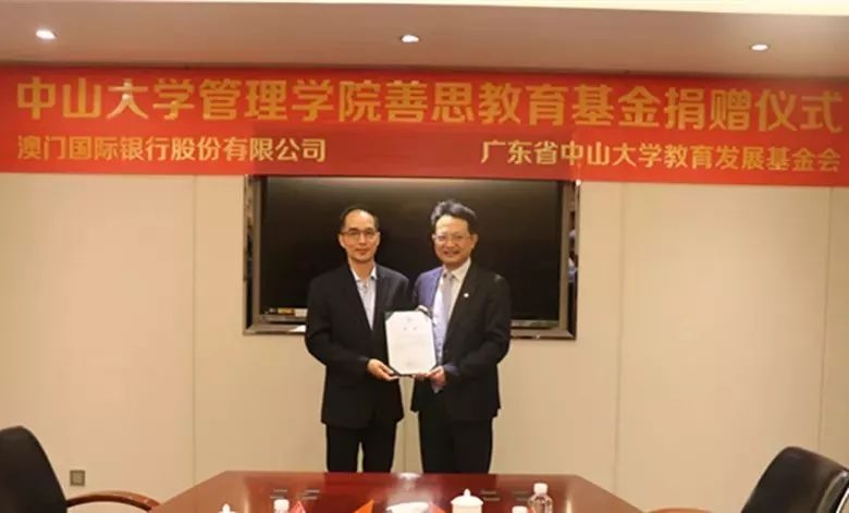 在庆祝澳门回归祖国20周年之际,澳门国际银行捐资在管理学院设立奖学奖教金,表彰在教学科研领域作出贡献的教师,助力管理学院人才培养。希望今后双方能够进一步加深合作,共同发展。