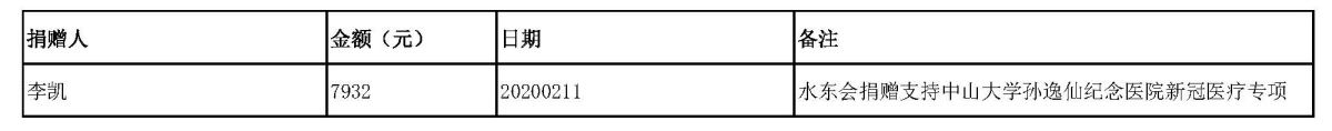 (该捐赠统计数据根据汇款附言"中山大学医疗支援专项基金"为统计口径)。