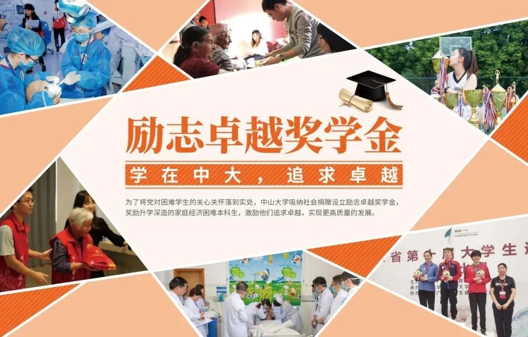 为了将党对困难学生的关心关怀落到实处,2020年起,中山大学吸纳社会捐赠设立励志卓越奖学金,奖励升学深造的家庭经济困难本科生,激励他们追求卓越,实现更高质量的发展。2020年6月,全校近600名2020届家庭经济困难本科毕业生升学深造,每人获得5000元励志卓越奖学金。获奖学生包括建档立卡贫困户学生、国家级贫困县学生、受新冠疫情影响家庭经济收入的学生、临时困难补助学生、国家助学贷款学生等。