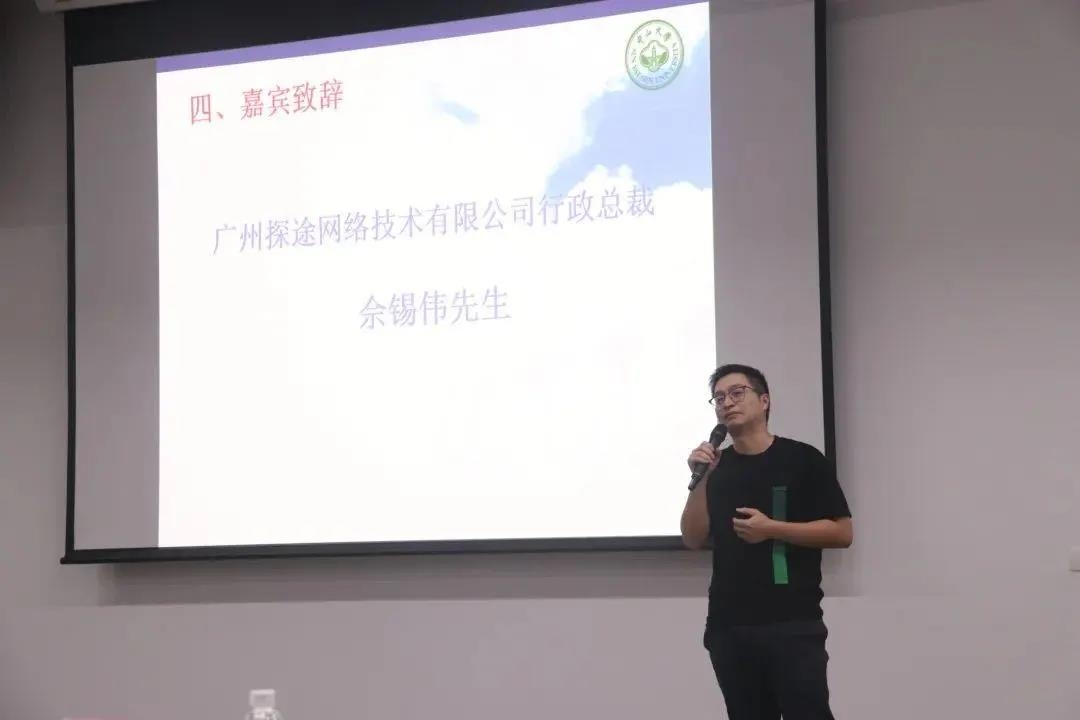 随后,校友代表——广州探途网络技术有限公司行政总裁佘锡伟先生与大家分享了他在本科生、研究生及就业阶段的人生经历。他肯定了学习成绩的重要性,企业对成绩好的学生更有好感度,并鼓励大家不断学习深造。同时,他也分享了自己在研究生求学时的感触:不迷信权威,要有自己的科学价值观。最后,他表达了对交通学子要敢于实现自己价值的期望。