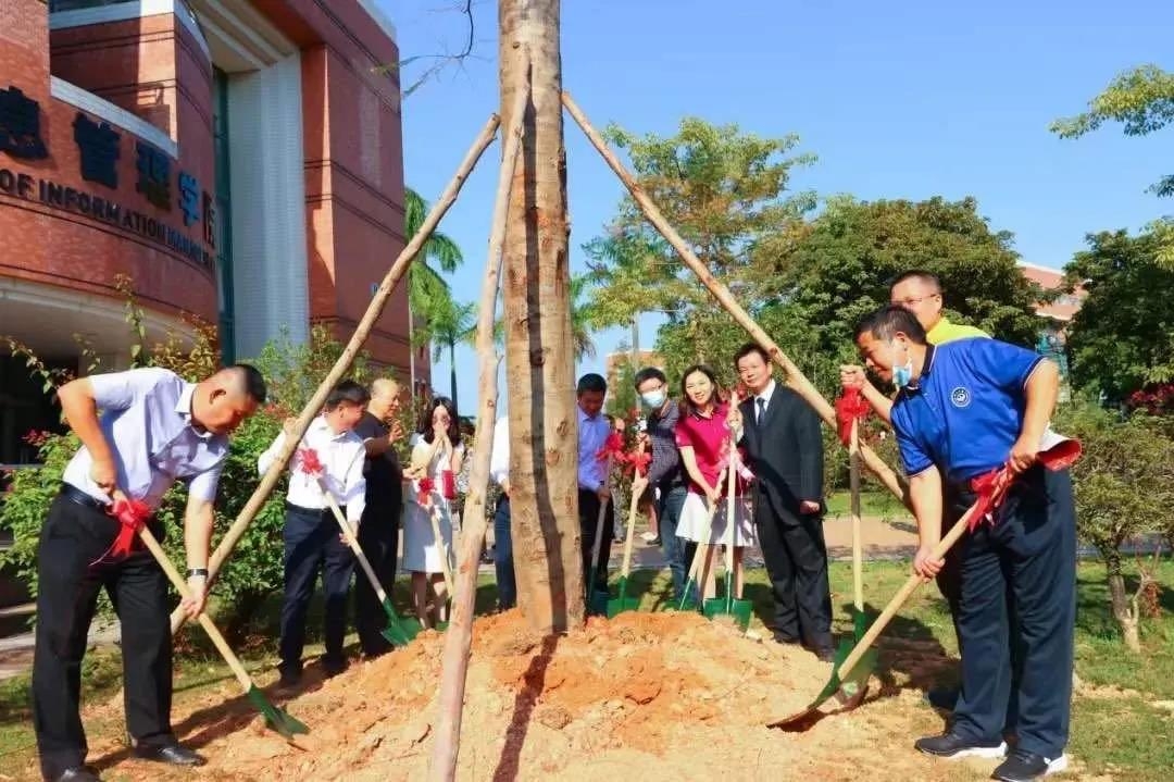 11月8日,值中山大学信息管理学院40周年之际,学院校友会向母院捐赠凤凰木及“立德树人”石,并将信息管理学内庭绿地美化一新。信息管理学院党委书记林俊洪、常务副院长张靖、教授曹树金,校友代表汤庆松、赖炳才、方家忠、张志华、吴玉琴等,行业导师代表张黎明、刘伟国等一同参加了植树仪式。