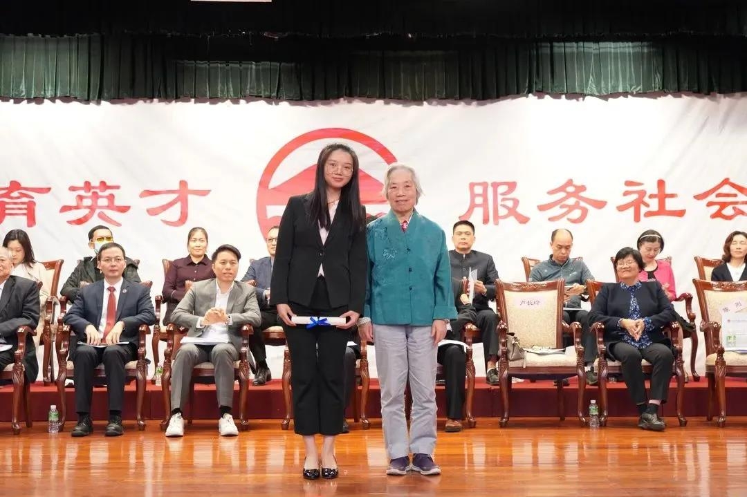 获奖学生代表、恩社2020级理论经济学专业硕士研究生刘玲琳发表感谢致辞。刘玲琳同学分享了自己跟随研究生支教团前往云南凤庆支教的经历,她总结道:“院训教导我们要服务社会,这其中蕴含着沉甸甸的责任。商海沉浮,岭院学子也要保持价值观的沉淀。”接着,她讲述了伍沾徳先生的往事,诉说着她对岭南精神与岭南血脉的理解。最后,她表明了自己要以自身行动延续岭南血脉的志向,并向心系岭南的所有人表达诚挚的感谢与祝福。