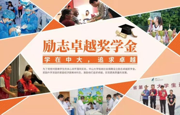 中山大学励志卓越奖学金设立于2020年,资助对象为已取得境内外高校升学深造资格的应届家庭经济困难本科生,一次性奖励每人5000元。旨在将物质资助和精神培育相结合,为家庭经济困难学生的升学深造提供有力激励和切实保障。