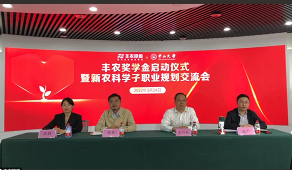 闫子铜董事长表示,丰农公司作为农业农村部全国星级农业科技社会化服务组织和广东省重点农业龙头企业,理应承担社会责任、回馈社会;作为曾经的中大学子饮水思源,能够在农学院设立奖学金,支持母校新农科人才培养,倍感荣幸。希望学弟学妹们不断增长才干,不负社会的期待,学成之后回报社会、建设祖国。
