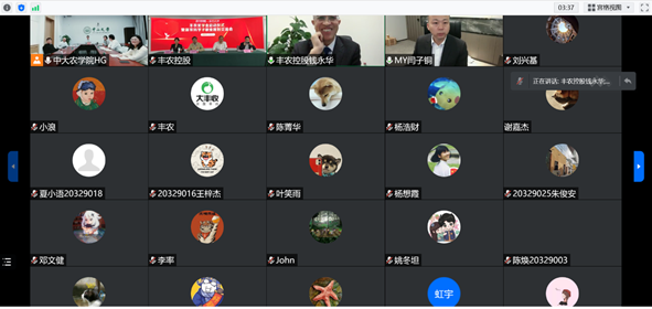 为了帮助学生不断提升对国家维护粮食安全、实施乡村振兴战略的理解,加深国家“三农”发展对人才实际需求的认识,激励同学们知农爱农、务农兴农,3月24日晚,农学院以线上与线下结合的方式,与深圳丰农控股公司共同举办丰农奖学金启动仪式,并特邀丰农控股公司的领导专家做了新农科学子职业规划的讲座报告与体会分享。