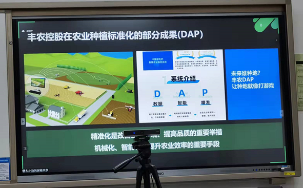 王兴林教授从长期的农业农村实践经验出发,理论联系实际地介绍了对农业“三品一标”的思考。王教授指出,新的“三品一标”(即品种、品质、品牌,标准化)从过去单纯侧重产品向农业生产的全过程、全产业链延伸。品种作为作物种质资源,是农业可持续发展的基础;品质是品种的生存之本、品牌的建设基石,决定民生的质量;品牌是消费者的“吸铁石”,是烙印在舌尖上的味道;标准化是品牌的基础,也是实现农业现代化的基石。王教授概述了目前我国农业 “三品一标”发展的痛点,希望师生们关注实践需求,努力为国家“三农”发展补齐短板;展示了丰农公司在推行农业种植标准化中的部分成果DPA系统,引起了师生们的极大兴趣。