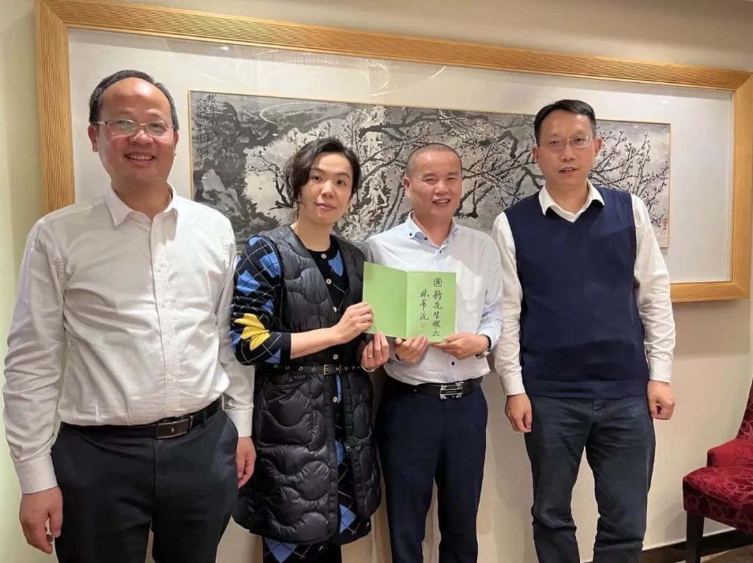 校友会秘书长黄瑞敏(左二)以及公卫学院党委书记范瑞泉(左一)、院长夏敏(右一)代表母校及公卫学子向爱心校友(左三)表示感谢