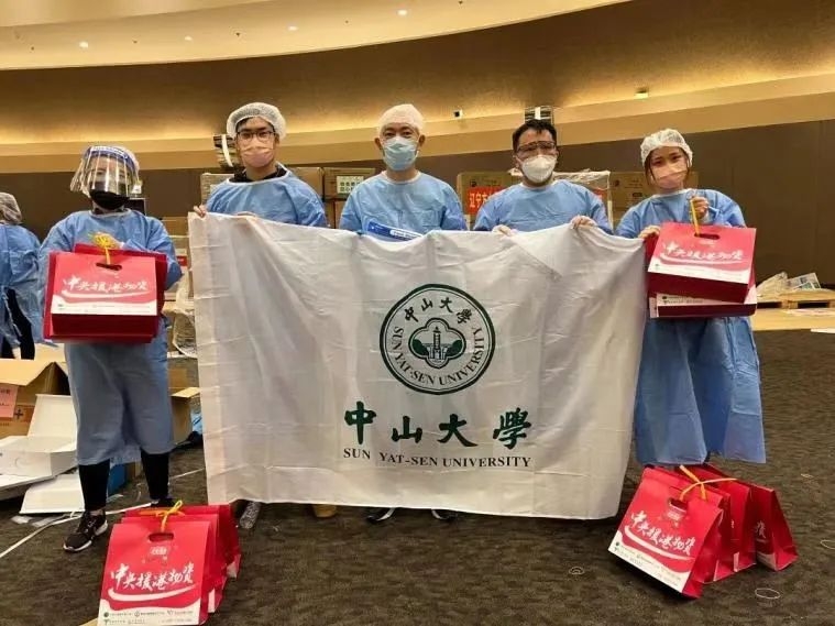 在各方校友支持和协助下,中山大学香港校友联合会陆续收到捐赠的防疫物资,并迅速分发到急缺防疫用品的在港校友手中。香港校友联合会面向所有确诊及初步确认密接的校友免费提供健康包(包括连花清瘟胶囊、快速检测盒、口罩、面罩、粤抗1号、防护服等物资)。其后,通过登记申领,先后四次为未确诊的在港校友及校友家人派发疫情健康包。在此过程中,香港校友伍子桥将自己的仓库用于接收物资,并尽心尽力参与到各轮次的健康包派发工作。为保证香港校友能够在最短时间内免费获得紧缺的防疫物资,香港校友联合会理事和监事累计捐款万元,承担所有校友的“健康包”费用。