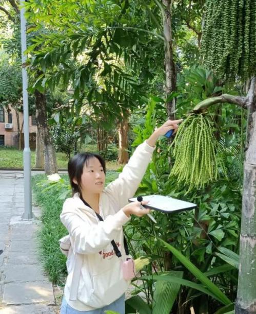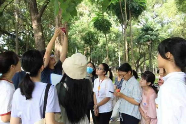 此外,“康乐植悟”团队还举办了康乐导赏活动,由导赏讲解员带领同学们了解康乐园的植物故事,欣赏静默不语的植物背后的美丽。他们走过挂满了翠绿浆果的杨桃树,观察绞杀着的白千层与大榕树;繁盛似锦的异木棉与绚丽如火的羊蹄甲使康乐园生意盎然,点缀着阳光下的一场追寻美的旅程。