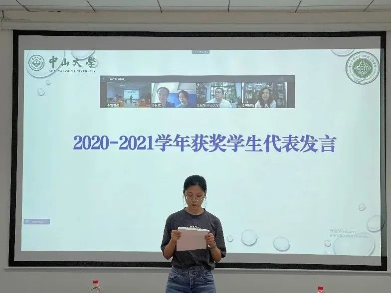 接下来,丘海明教授、王琅副书记共同为2020-2021学年获奖学生颁发荣誉证书。两名获奖学生代表依次发言,分享自己的心得体会。