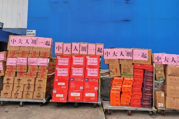 今天一早,学生完成了阶段性隔离,领取到了这份来自学校和深圳学长学姐的暖暖情谊!同学们特别感谢学校、学校校友会、深圳校友会的关爱。
