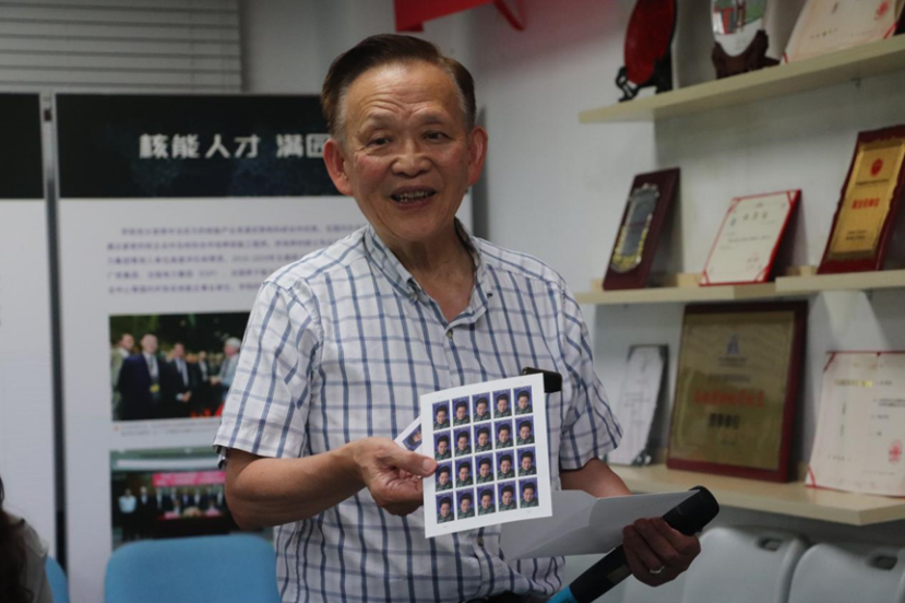 钟赐贤教授展示美国邮政局发行的核物理学家吴建雄纪念邮票