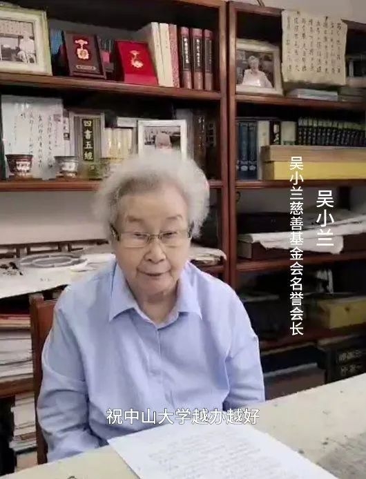 广东省吴小兰慈善基金会专程邀请了名誉会长吴小兰女士录制了致辞视频。吴小兰女士表示百年大计,教育为本,国家的发展,民族的振兴,根本是在教育。这次捐赠用于支持学校高层次人才的引进,有利于促进学校人才强校发展战略的实现,是具有长远意义的。她同时对大湾教育科技集团董事长陈俊校友的倾情赞助表示感谢。