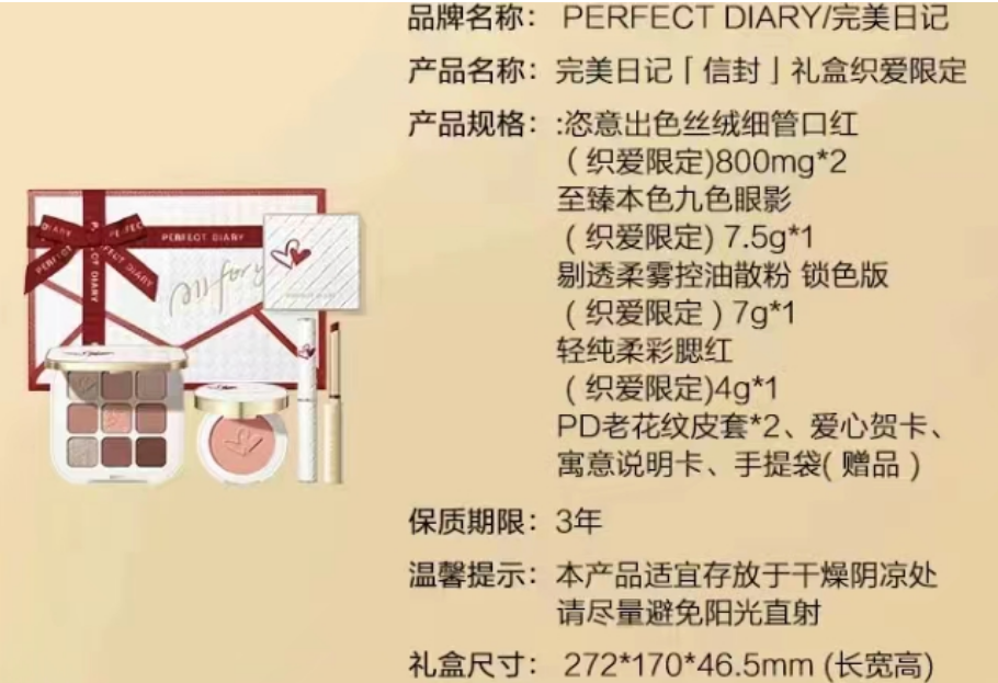 即可获得完美日记『信封』织爱限定礼盒