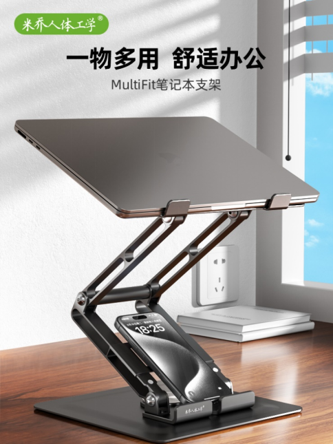 米乔人体工学是中国首家连续15年专研人体工学技术与产品的品牌。品牌方深圳米乔科技有限公司致力于用人体工学技术和产品,让国人远离颈椎病、腰椎病、鼠标手等现代职业病,让人更健康、更高效。舒适的工作或生活离不开一个稳定的笔记本支架,抬高视线改善坐姿