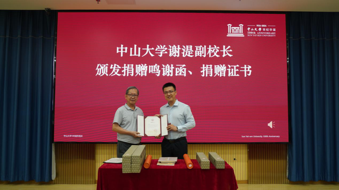 中山大学副校长谢湜教授颁发捐赠鸣谢函、捐赠证书(历史学系李子归摄)