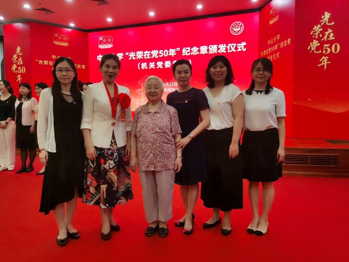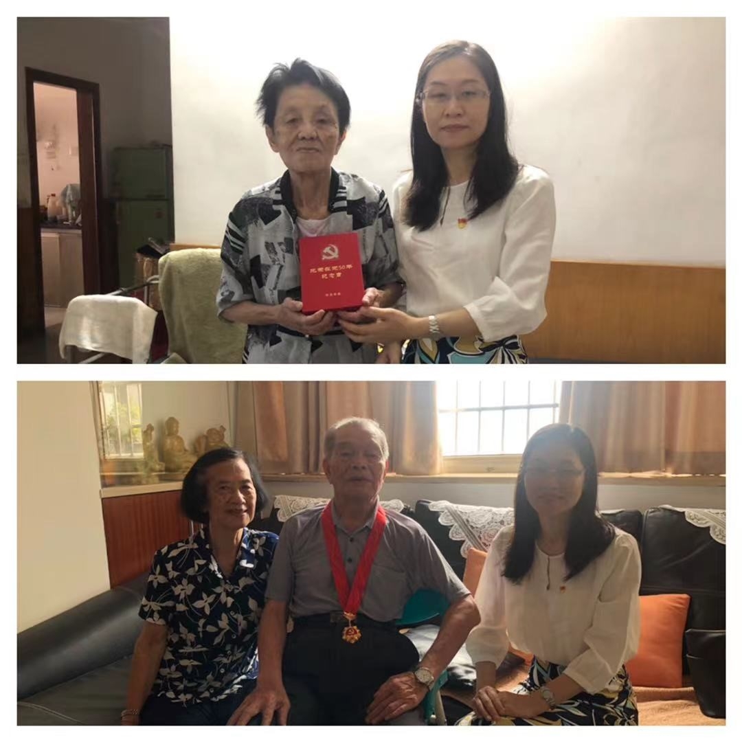 6月23日,支部书记、办公室主任黄瑞敏出席中山大学“光荣在党50年”纪念章颁发仪式(机关党委专场),看望慰问了我支部获得纪念章的张慧玑、卢春宁同志,表达了党组织对他们的关怀和问候。
