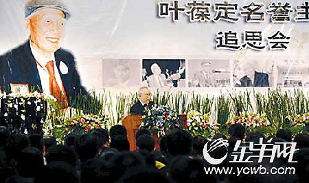 本报讯 记者夏杨、实习生陶明霞、通讯员刘泽炀摄影报道:中山大学岭南学院董事会名誉主席叶葆定今年1月25日逝世,享年100岁。昨日,中大为这位“岭南学长”举办追思会。人们都记得:叶葆定一生为中大及岭南学院建设发展捐赠近7000万元;而他自己家的破沙发一直不肯换。