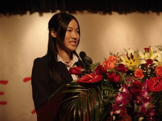 获奖教师代表杨子晖老师、获奖学生代表06级国际经济与贸易专业钟友芬同学代表获奖老师、学生对岭南学长和老师表示最诚挚的谢意,并表示将像前辈们一样担负起传承岭南精神的责任。