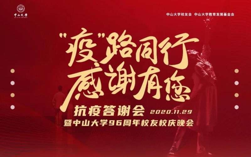 11月29日晚,由中山大学校友会、中山大学教育发展基金会主办的“‘疫’路同行 感谢有您”抗疫答谢会暨中山大学96周年校友校庆晚会圆满举行。