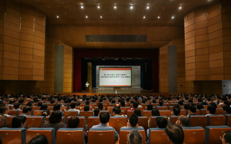 10月23日下午,我校在广州校区南校园梁銶琚堂举办中山大学“不忘初心、牢记使命”主题教育,校党委书记陈春声讲授“践行初心使命 坚持立德树人 加快推进中国