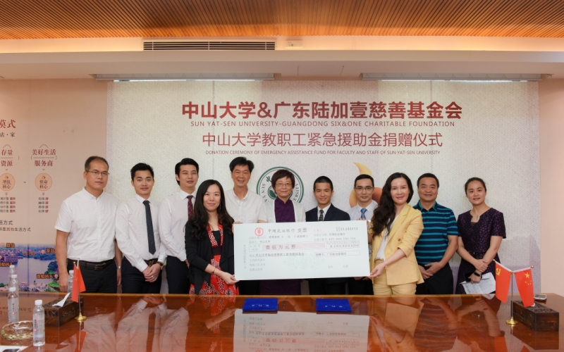 5月24日上午,“中山大学陆加壹教职工紧急援助基金”捐赠仪式在广东陆加壹集团总部举行。