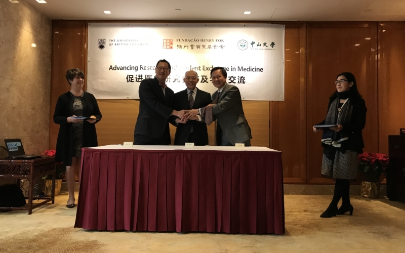 在澳門霍英東基金會的支持下,中山大學和加拿大不列顛哥倫比亞大學(UBC)就醫療科研和學術交流方面開展夥伴合作關係,並於日前在香港舉行慶祝活動和捐贈簽約儀