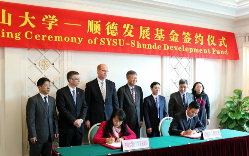 1月9日上午,我校与顺德区人民政府在顺德举行中山大学-顺德发展基金签约仪式。