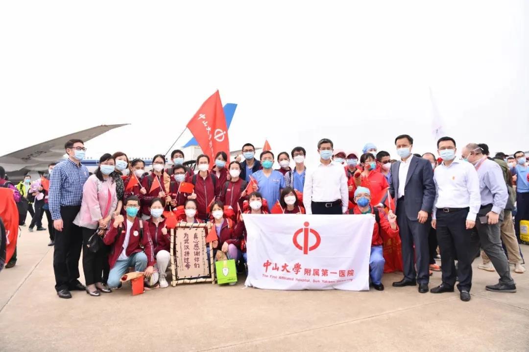 3月22日,附属第一医院驰援武汉第一、二批医疗队18名队员踏上了归家路。广东省副省长张光军,中山大学副校长、附属第一医院院长肖海鹏,医院党委书记骆腾、副院长陈旻湖、文卫平等在广州白云机场迎接了队员归来。