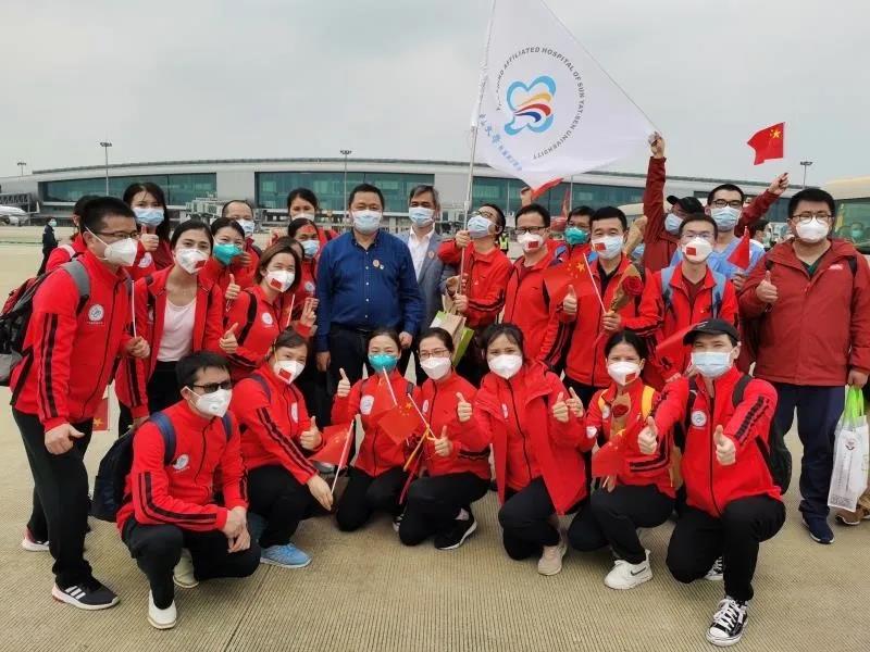 3月22日,孙逸仙纪念医院第一批援鄂医疗队20名队员圆满完成任务,平安归来。医院院长宋尔卫、党委书记王景峰在机场为最美逆行者“接风洗尘”,接机人员高举横幅列队向守护生命的白衣天使致敬,欢迎抗疫英雄们回家。
