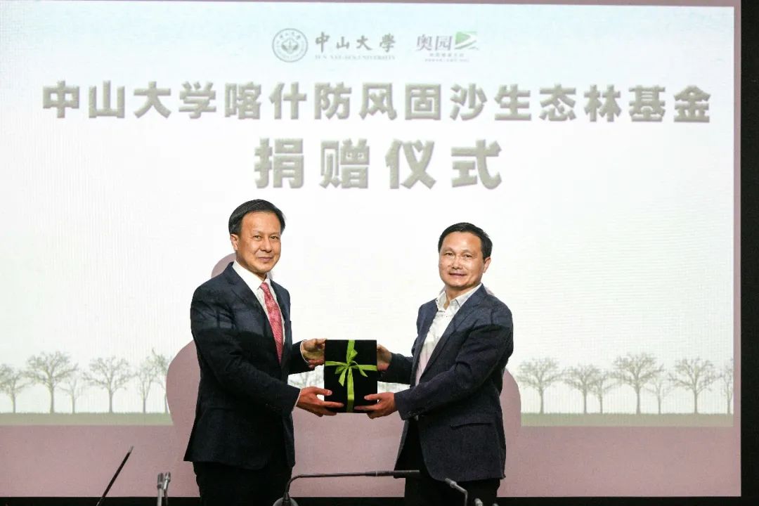 4月30日,中山大学喀什防风固沙生态林基金捐赠签约仪式在梁銶琚堂第一会议室举行。中国奥园地产集团股份有限公司捐赠人民币500万元,设立中山大学喀什防风固沙生态林基金,主要用于促进喀什地区的生态修复、保护当地的生态环境安全,助力我校在喀什麦盖提县的防风固沙生态林建设。