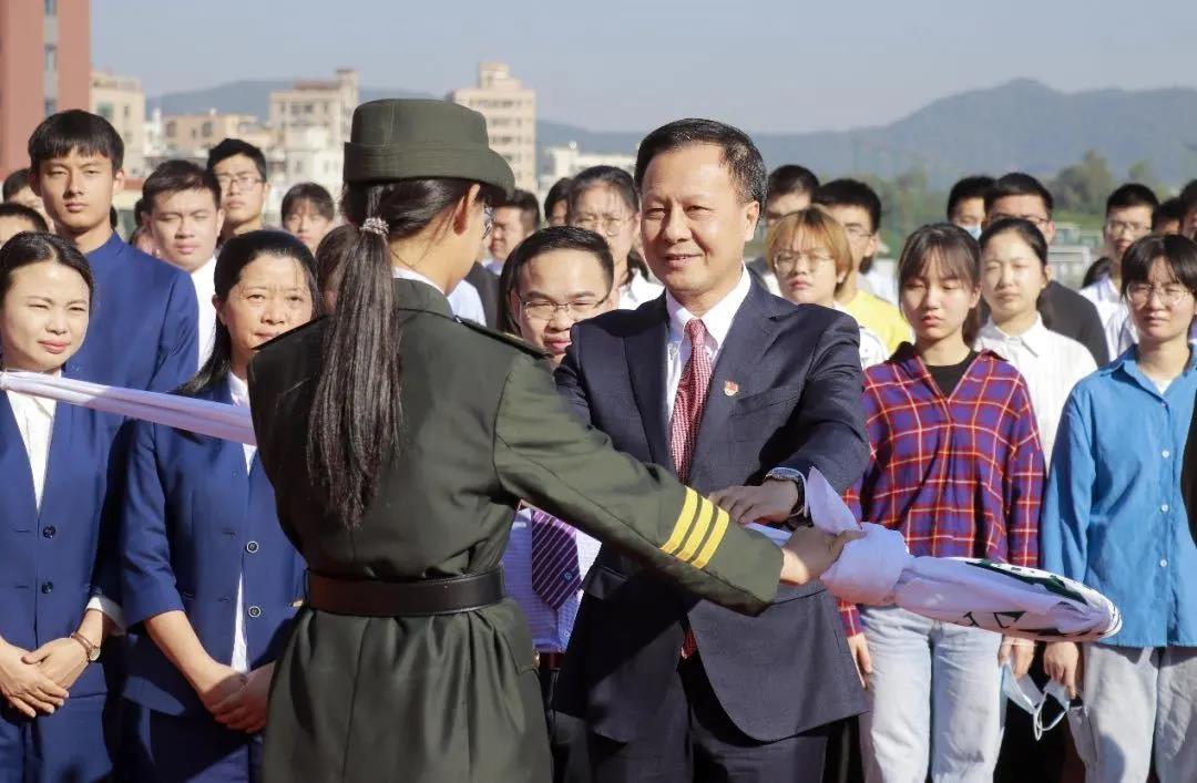 我校举行校庆日向孙中山先生铜像敬献花篮暨升旗仪式