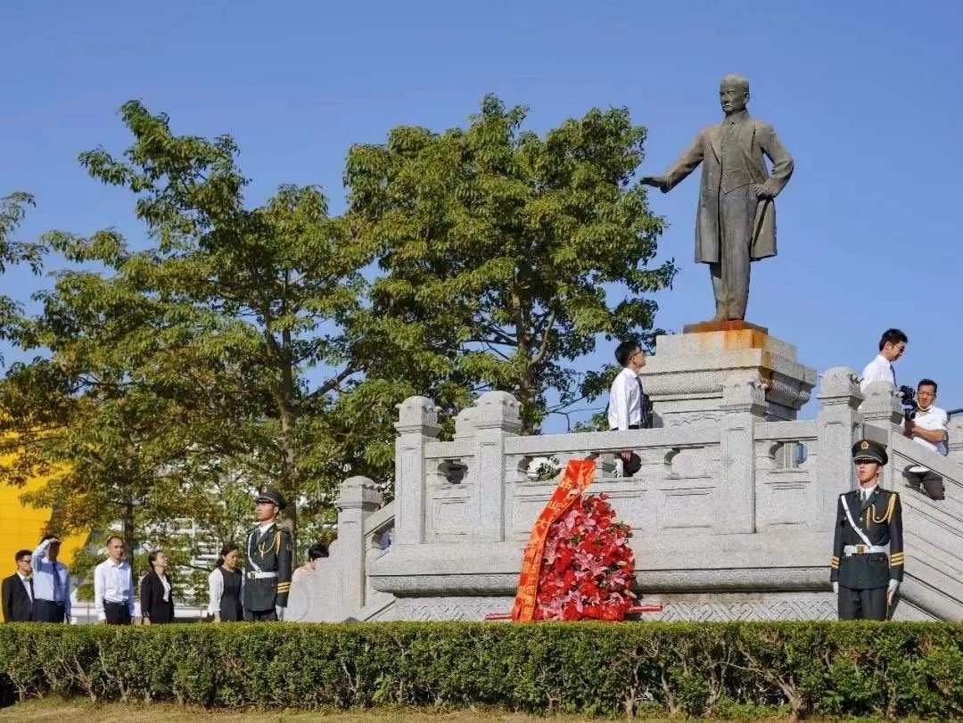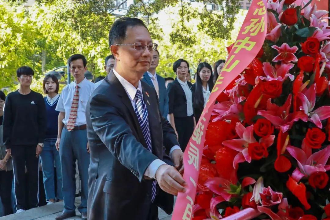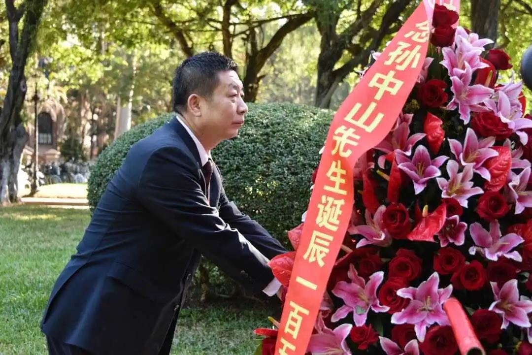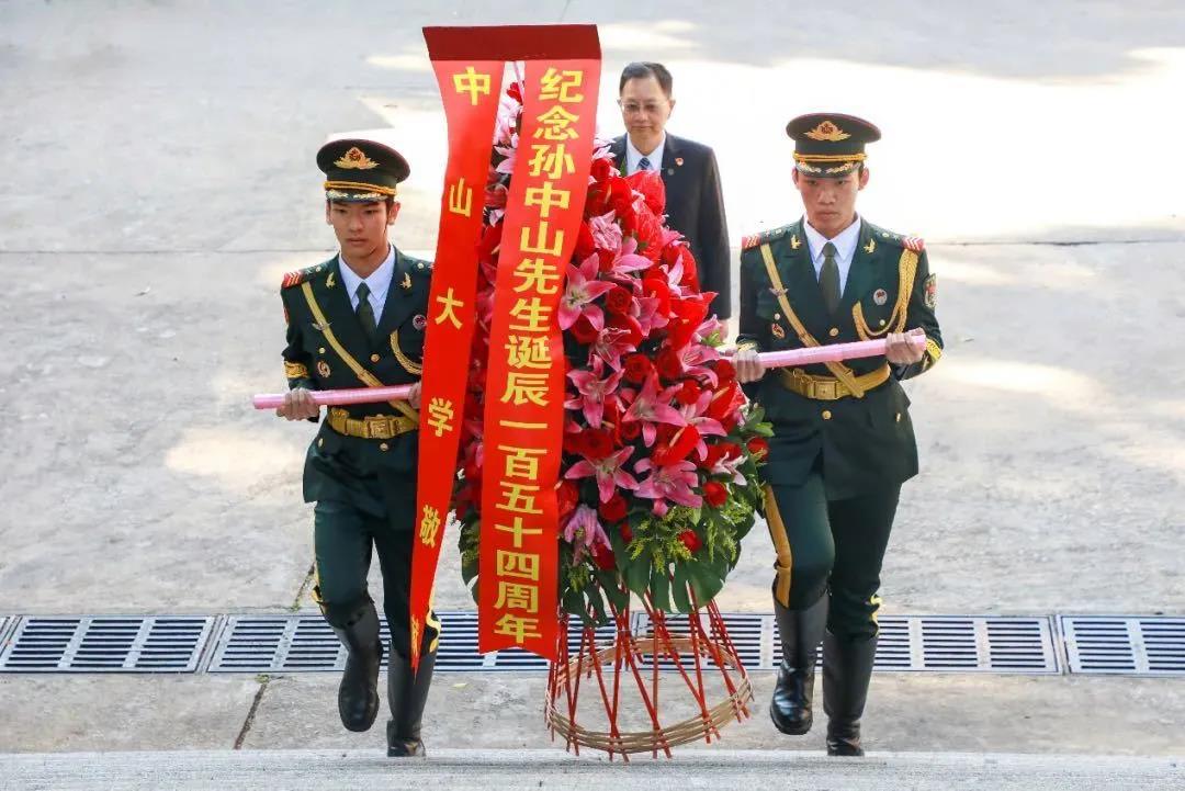 11月12日,为纪念中国民主革命的伟大先驱孙中山先生诞辰154周年、孙中山先生亲手创办中山大学96周年,我校举行向孙中山先生铜像敬献花篮暨升旗仪式。
