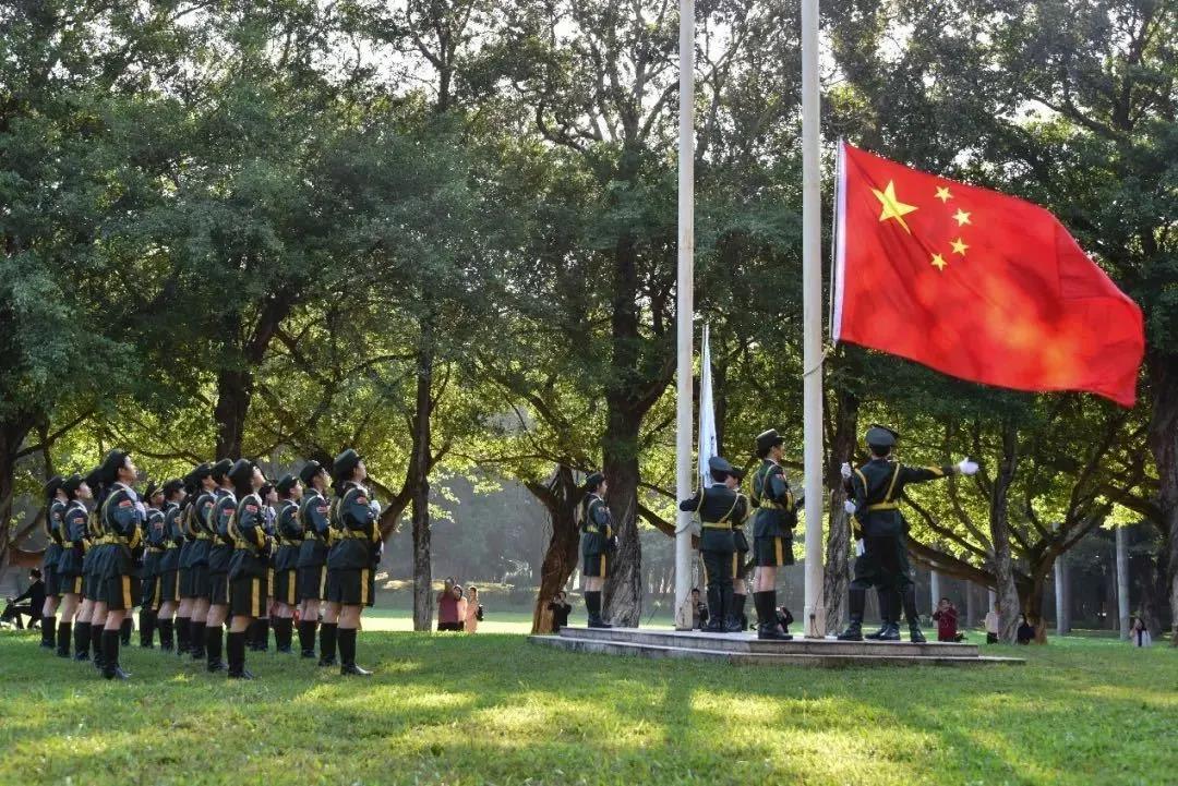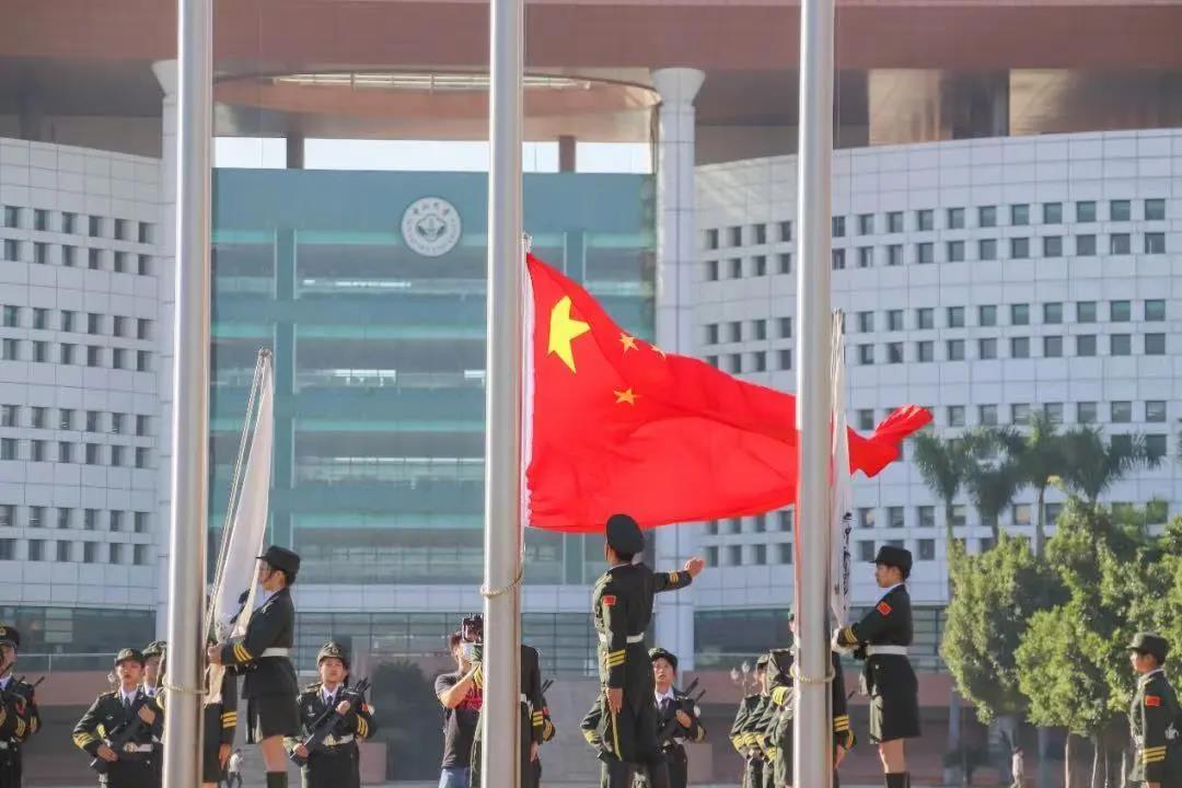 仪式于上午九时正式开始。在庄严的国歌、校歌声中,五星红旗和中山大学校旗先后冉冉升起,全体人员行注目礼。