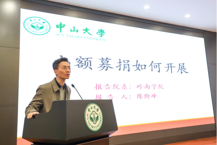 岭南学院陈险峰书记介绍了岭南学院小额募捐如何开展的工作经验,他表示,小额捐赠的开展要培育捐赠意识,主抓重点活动和重点对象,加强捐赠宣传和畅通捐赠渠道。特别指出要明晰捐赠链条,做好捐赠服务跟进工作。