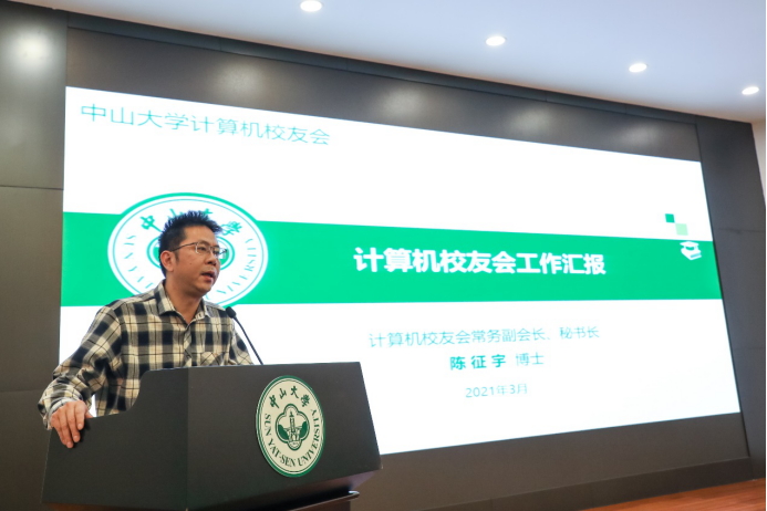 计算机学院陈征宇副书记详细介绍了如何梳理计算机学科的发展脉络,并整合计算机学科相关校友资源成立计算机校友会的工作经验和做法。