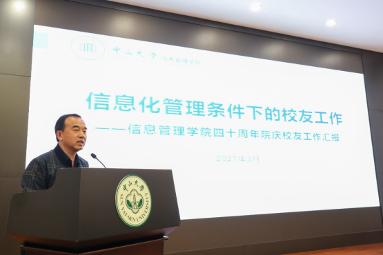 信息管理学院李庆双副书记围绕信息管理条件下如何开展校友工作以及40周年院庆校友工作开展介绍了工作经验。