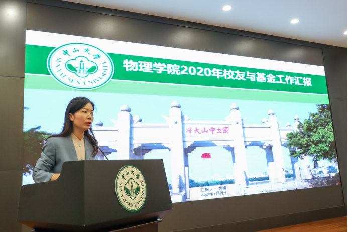 物理学院黄婧副书记总结了物理学院2020年校友与基金工作,并详细介绍“誉侃论坛”助力人才培养,开展了大量的讲座、实践考察活动,通过采访校友前辈传承优秀历史。