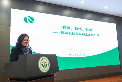 哲学系王丽霞副书记指出校友与基金工作发乎情、依于众、行于理、长于实。要重视校友工作的反馈机制建设。