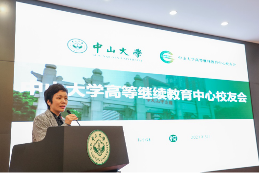 高等继续教育中心韦小妹副主任介绍了高等继续教育中心校友会的品牌活动、特色部门和慈善公益,重点介绍了云南凤庆扶贫工作和抗疫募捐爱心行动。她强调要让校友参与校友会的各项工作,增强校友参与感。