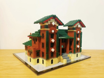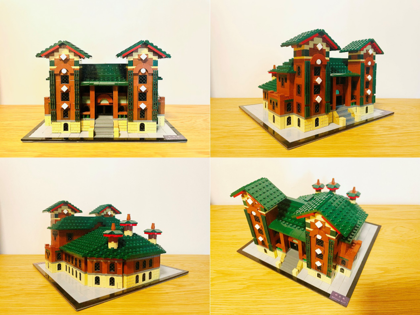 这款积木拼砌模型,完全由校友自主设计,使用1400余块小颗粒积木拼搭而成,对怀士堂进行了高度还原。