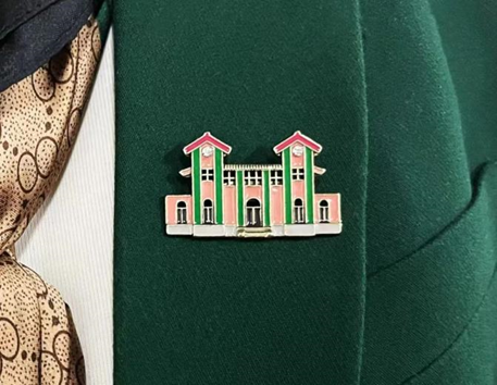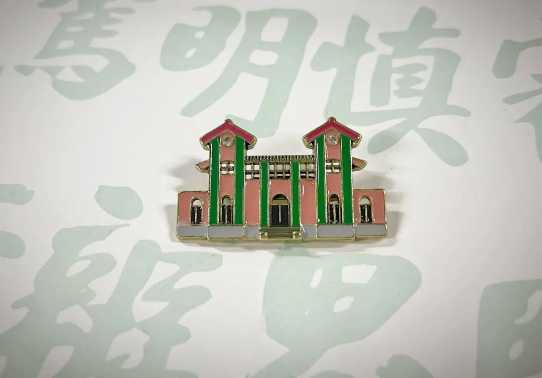 红楼翠微,珠江水长。怀士堂胸针,用简洁配色,简约设计,将建筑特色浓缩在小小方寸之间,
