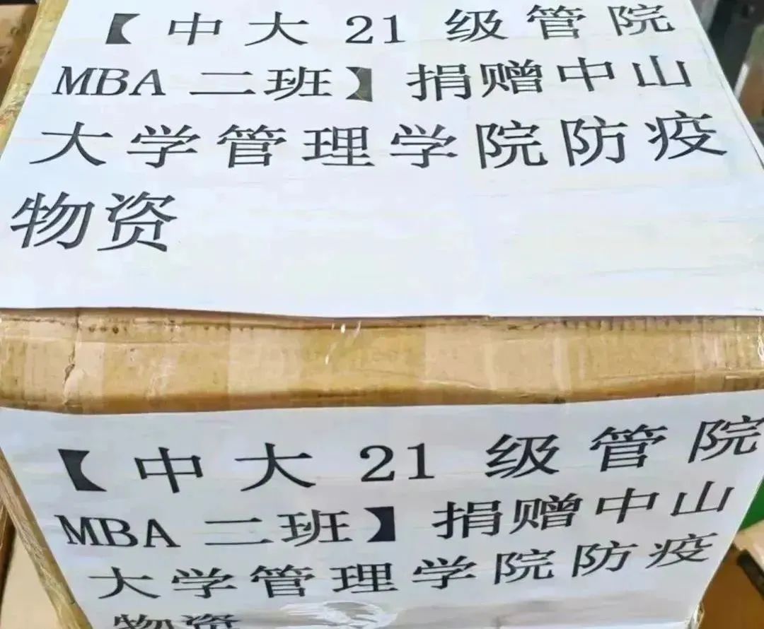 管理学院EMBA校友企业向学院师生捐赠N95口罩,MBA校友们捐赠了一批巧克力、耳塞和眼罩。