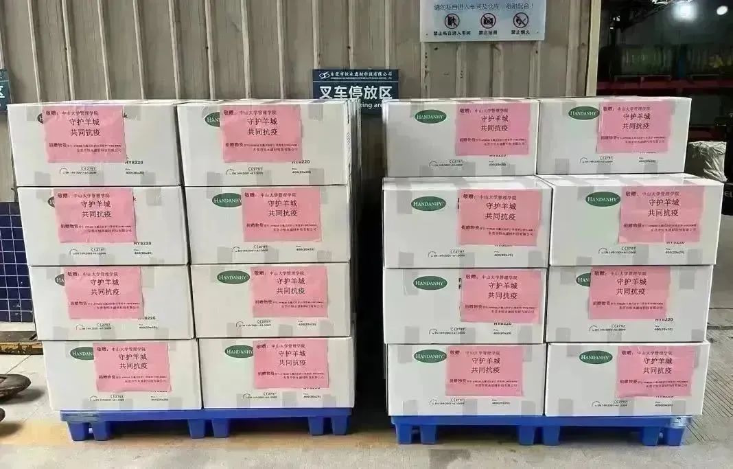 周鹏校友所在企业广东通用医药有限公司,为运送酒精喷雾和防护服等部分物资提供了物流支持。