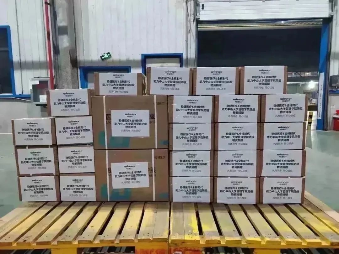 杨宁同学所在企业东莞市恒永滤材科技有限公司,向学校捐赠了75箱共3万个N95口罩。