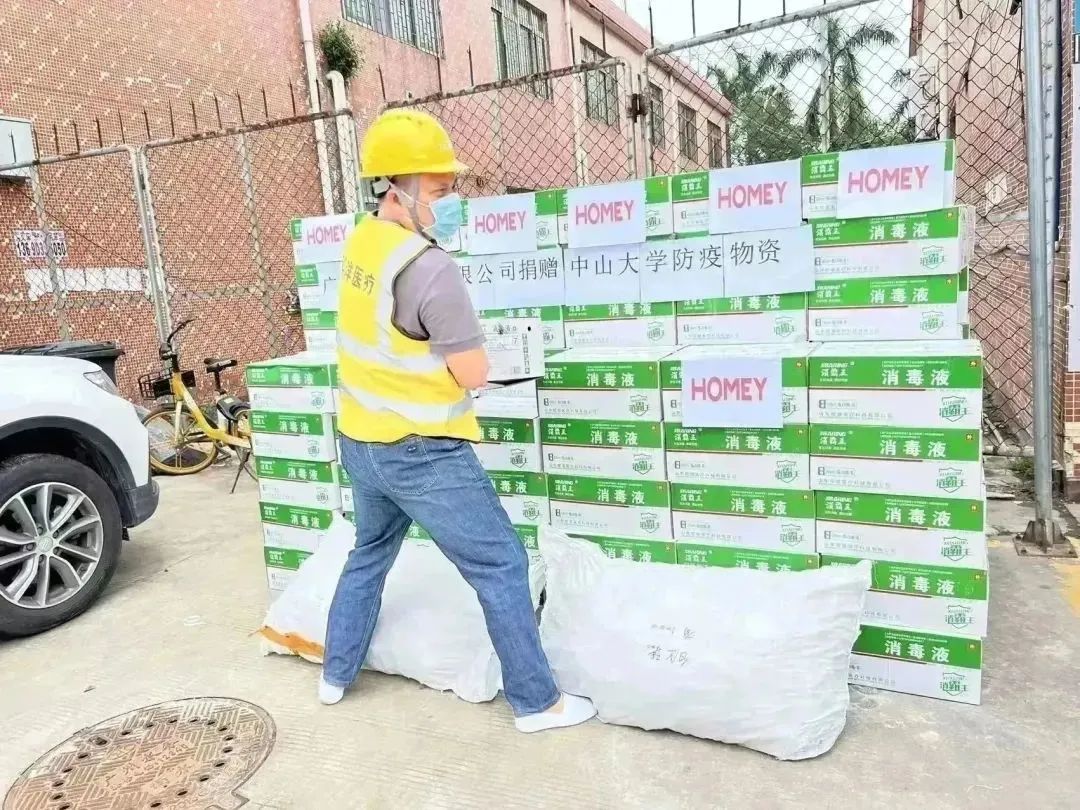 沈淑榕校友所在企业广州乐恋屋建材有限公司,向学校捐赠500ml医用消毒酒精5000瓶;沈淑榕校友还与同班同学及朋友联合捐赠2000套防护服。