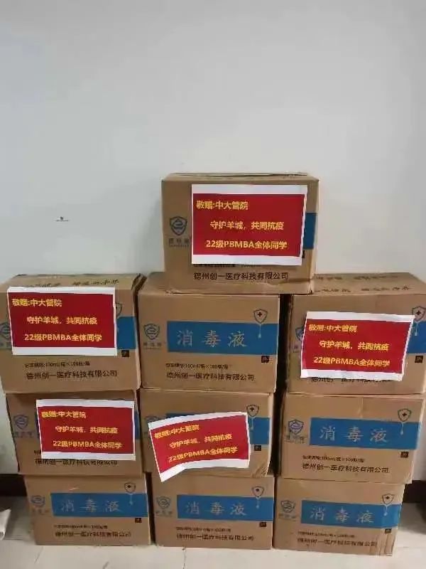 管理学院2022级PTMBA全体同学捐赠1000瓶消毒酒精。